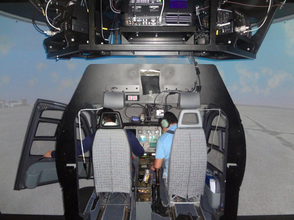 O simulador de voo é uma réplica em tamanho real, contendo instrumentos, equipamentos, painéis e controles de uma cabine de helicóptero de tamanho natural. Fornece todos os instrumentos de controle e navegação básicos da aviação, o planeta Terra inteiro de forma virtual, todas as características da aeronave, inclusive suas reações e conta com recursos audiovisuais. Além disso, é avaliado, qualificado e aprovado pela ANAC (Agência Nacional de Aviação Civil), órgão regulador da Aviação Civil no País.