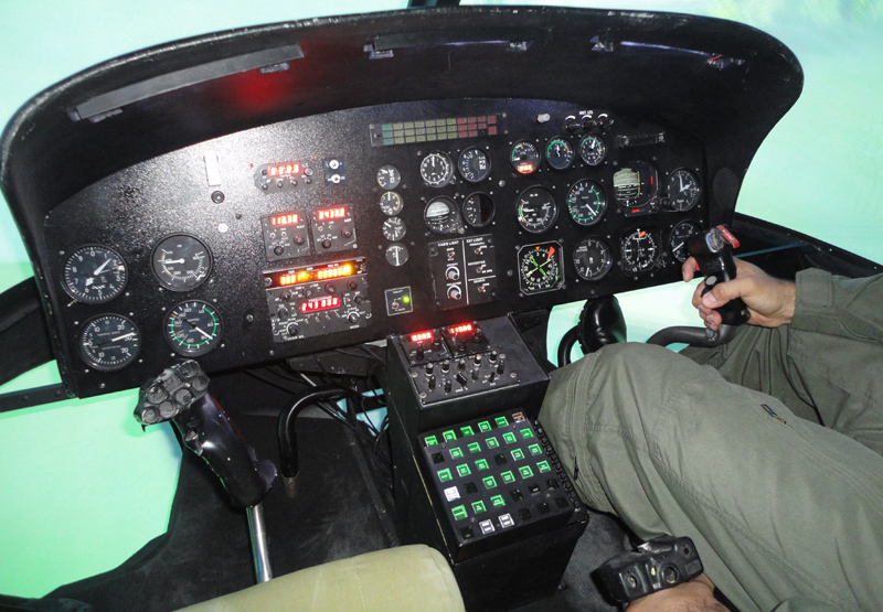 FTD (Flight Training Device = Dispositivo de Treinamento de Voo), que possui uma cabine de um helicóptero fixa ao solo com seus instrumentos, assessórios, comandos e grandes telas, onde são projetados aos pilotos os horizontes artificiais e a sensação visual da pane.