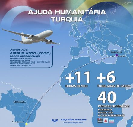 Brasil – Na noite de quarta-feira (08), bombeiros de São Paulo, Minas Gerais e Espírito Santo embarcaram no Aeroporto de Guarulhos em uma avião KC-90 da FAB, rumo à Turquia para auxiliar no resgate de vítimas do terremoto que também atingiu a Síria. O tremor de magnitude 7,8 na escala Richter já matou mais de 16 mil pessoas, e a ONU estima que esse número chegue a 20 mil.