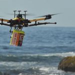 “O Rescue Pod é melhor descrito como uma carga útil semelhante a uma bolsa que é transportada pelo drone”, disse Ross Spencer, diretor-gerente da SOS Marine. “Uma vez que é lançado na água, ele é projetado para se auto-inflar dentro de cinco segundos”.