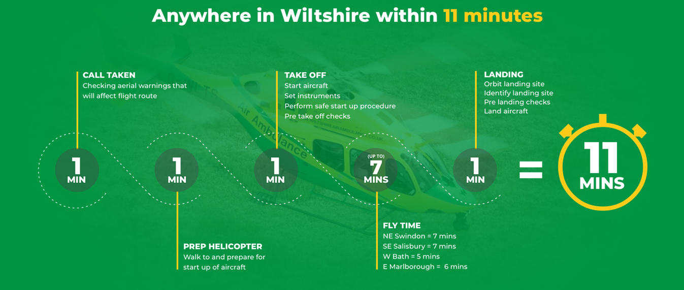 O serviço funciona até 19 horas por dia, 365 dias por ano. A base do helicóptero Bell 429, chamado de “Helimed22“, fica em Semington, Wiltshire, sudoeste da Inglaterra. Além dos equipamentos e insumos para suporte avançado à vida, o helicóptero também dispõe de farol de busca TrakkaBeam® A800, importante para auxiliar a tripulação em pousos noturnos, muito comum em helicópteros aeromédicos europeus e americanos.