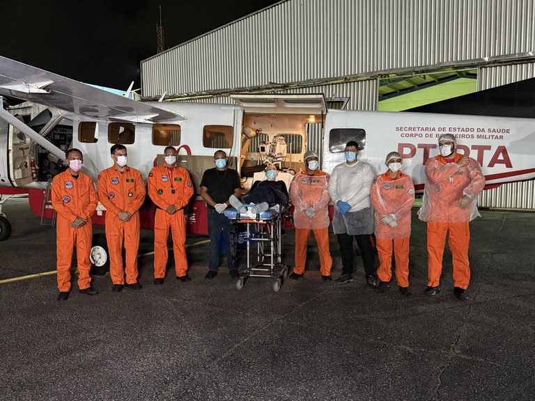 Para assegurar a estabilidade clínica do paciente durante o voo, a aeronave foi equipada com respiradores, monitores multiparâmetros, bombas de infusão, oxigênio e todo o suporte necessário para manter o acompanhamento contínuo do quadro de saúde.