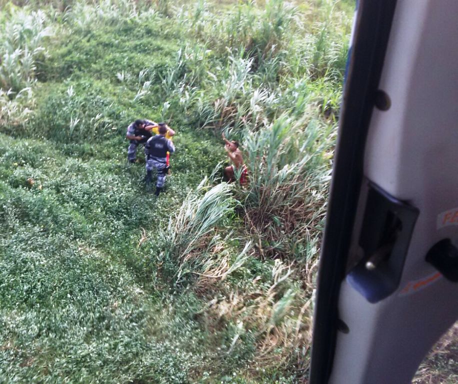 Neste momento, a tripulação identificou um suspeito que tentou fugir, e na sequência mais um indivíduo foi visualizado e após verbalização com os Operadores, este segundo já saiu do matagal com as mãos para cima. Os dois foram detidos. A Guarnição da PM em solo, estava em lado oposto ao local onde os suspeitos foram encontrados, desta forma, a presença do helicóptero e a atuação da tripulação foi primordial.