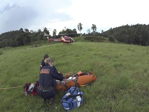 Após entrarem novamente em contato com Mônica, solicitante da ocorrência, a guarnição voltou à entrada da cachoeira e encontrou o local onde a vítima estava com auxílio do filho de Mônica.
