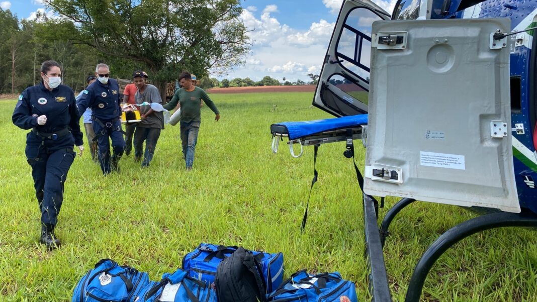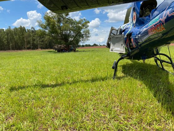 Paraná – Na tarde desta quinta (29), o serviço de operações aéreas do SAMU 192 foi acionado para resgatar vítima de atropelamento por caminhão em área de difícil acesso, no interior de uma fazenda na cidade de Nova Londrina, noroeste do estado do Paraná.
