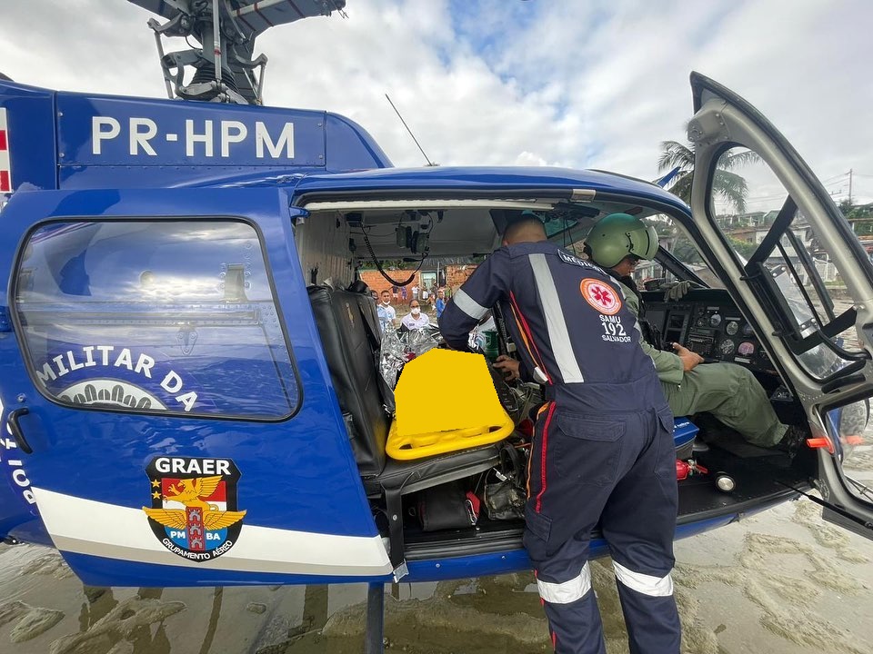 O helicóptero foi acionado pelo Serviço de Atendimento Móvel de Urgência (SAMU). Um profissional de saúde acompanhou o voo para realização do transporte do paciente em segurança. Segundo o oficial, por ser uma região de difícil acesso, a aeronave pousou em uma praia que estava com maré baixa, próximo à USF, onde o paciente foi embarcado e, em seguida, levado para o Hospital do Subúrbio, em Salvador.