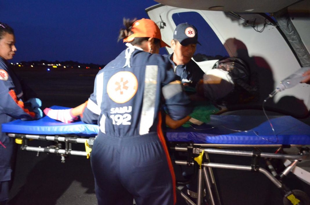 Vítima de escalpelamento é transportada pelo GRAESP da Ilha do Marajó para Belém. Foto: CB PM J. Azevedo