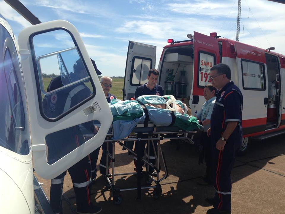 O paciente sofreu queimaduras graves e estava com as vias aéreas comprometidas, tendo em vista uma explosão do botijão de gás. Ele foi entubado e levado do município de Bagé para a cidade de Porto Alegre de helicóptero.